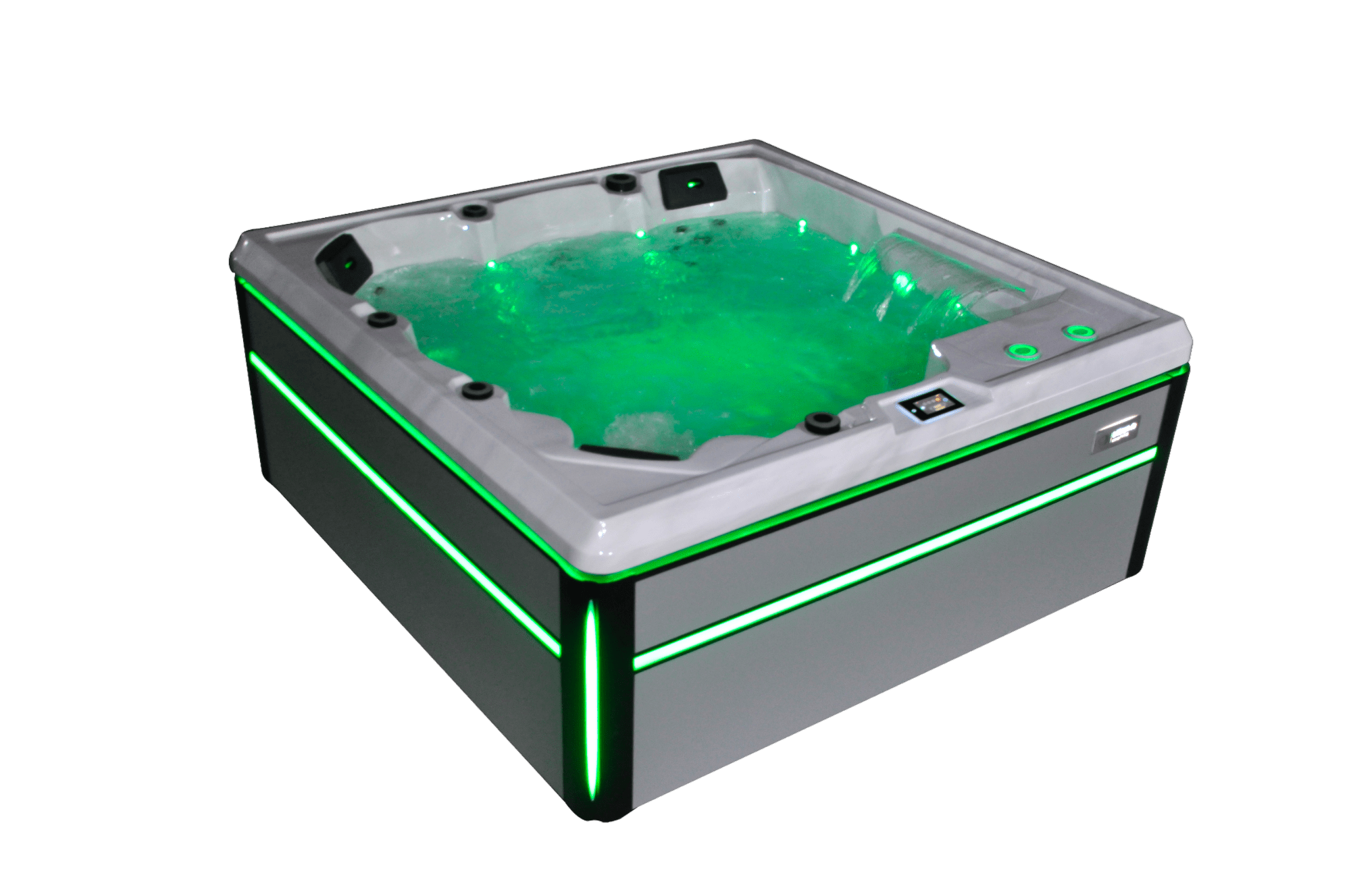 Dein Whirlpool ist selbstverständlich mit LED RGB ausgestattet. Selbst die Düsen sind beleuchtet - schau es Dir einfach mal bei uns an. Sieht schon toll aus....natürlich alles Steuerbar über das SpaTouch Steuerungspanel. Da zu als option noch eine Musikanlate? Es kann los gehen. Viel Spaß.